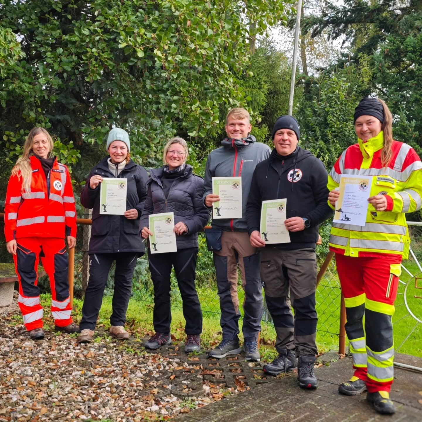 Bei nicht ganz so tollem Wetter stellten sich 4 Team's dem Eignungstest und 2 Team's der Vorprüfung. Nach einem doch relativ langen Tag konnten wir aber am Nachmittag positives berichten. Zum bestanden Eignungstest gratulieren wir ganz herzlich Jean mit Sky und Robert mit Zora von der RHS Harz sowie unseren Teams Susan mit Winnie Pooh und Jens mit Gimli. Die Vorprüfung bestanden Marie mit Bee Jay von der RHS Berlin Brandenburg und unser Teamdogsteam Sabrina mit Vio. Wir sind sehr stolz auf die Teams. Ein großer Dank geht an die Prüfungsleitung Lutz für die perfekte Orga, an die Ausbilder und Ausbilderanwärter fürs faire Beurteilen und an alle helfenden Hände.